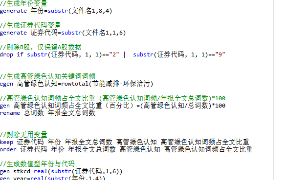 3、指标:证券代码、证券简称、stkcd、year、高管绿色认知、高管绿色认知词频占全文比重(百分比)、年报全文总词数、行业代码、行业名称、所属省份、所属省份代码、所属城市、所属城市代码