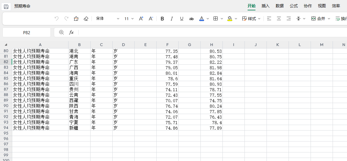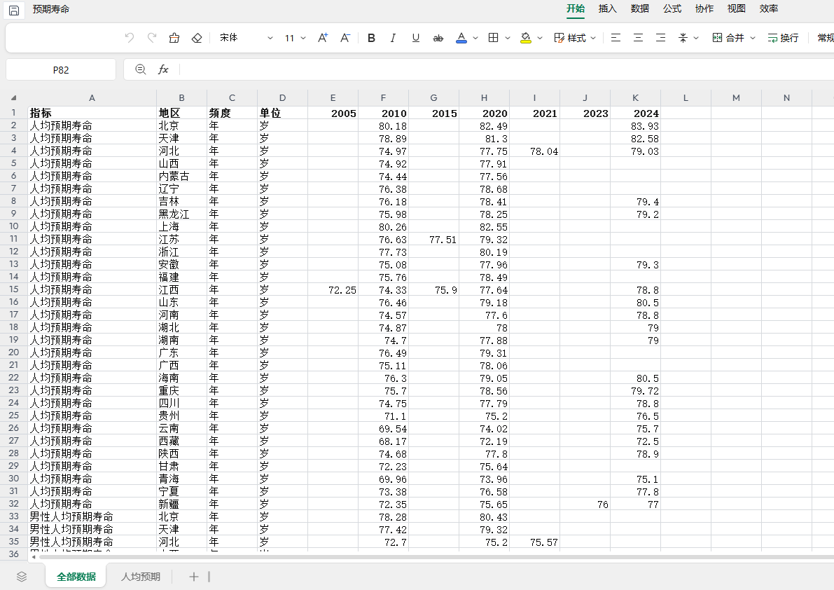 【数据集】中国各省份人口平均预期寿命(2005-2024年)