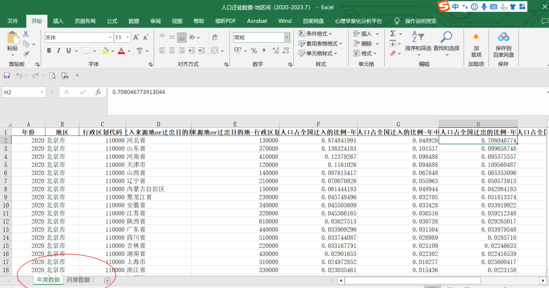 参考《中国工业经济》中王春杨(2020)的做法,利用“百度迁徙”大数据获取城市间的真实人口流动数据。计算地区间的迁徙人口占全国迁徙人口的比例。