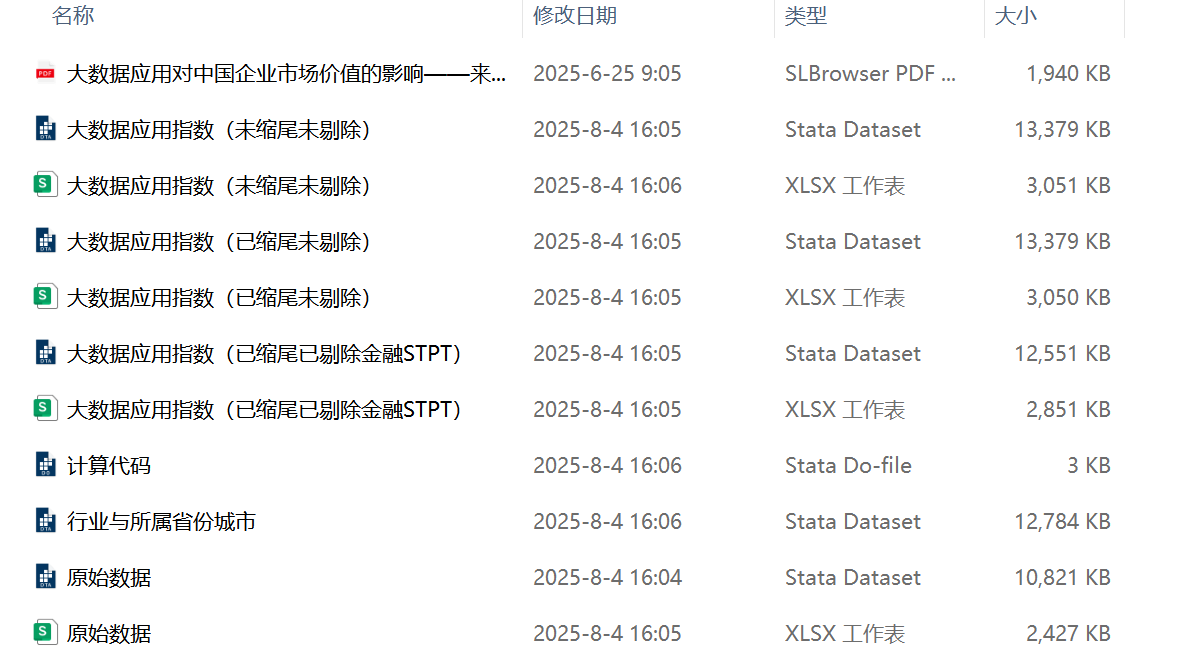 参考张叶青等(2021年)研究方法,以中国上市公司2000-2024年年报为数据来源,基于文本挖掘方法构建大数据应用指数,测算大数据应用关键词词频,并提供未缩尾未剔除、已缩尾未剔除、已缩尾已剔除金融STPT三个版本,旨在为相关研究者提供数据支撑
