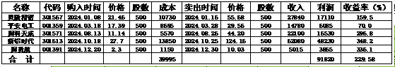 表1 2024年度新股中签及收益一览表