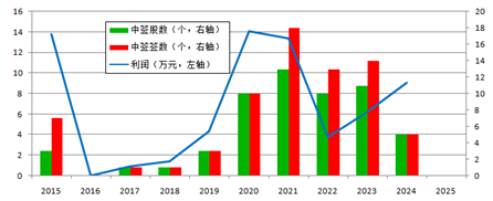 图4 2015年以来新股中签及利润一览图