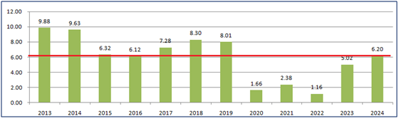 回顾2013年以来这11年的成绩,一共有2个亏损年度,分别为2018年和2023年,都是在AH市场存在较大跌幅的背景下发生的,以目前两个大市场的估值看,2025年不应该有大幅下跌的基础,所以,我对明年的收益并不感到悲观。当然,这并不是说在2025年不会出现大的波动,毕竟经济前景所面临的不确定性要远高于2024年。
