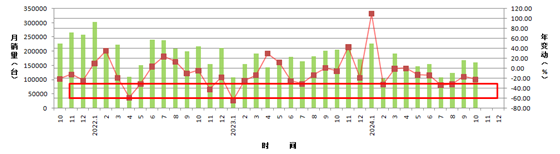 图6 2021年10月份以来,东风集团月销量柱状图