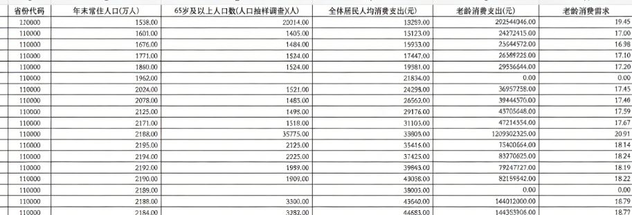 数据名称:老龄消费需求测算数据