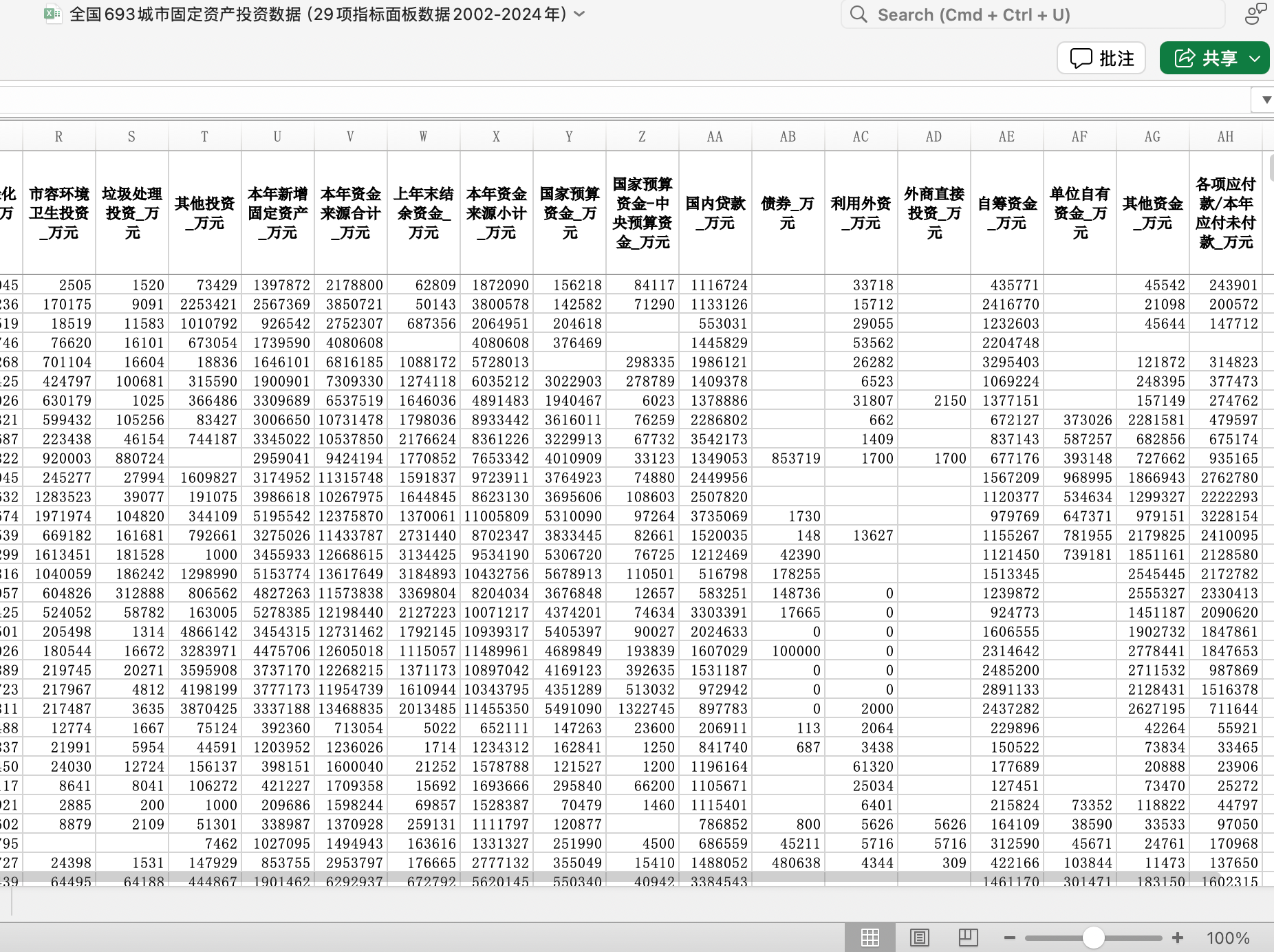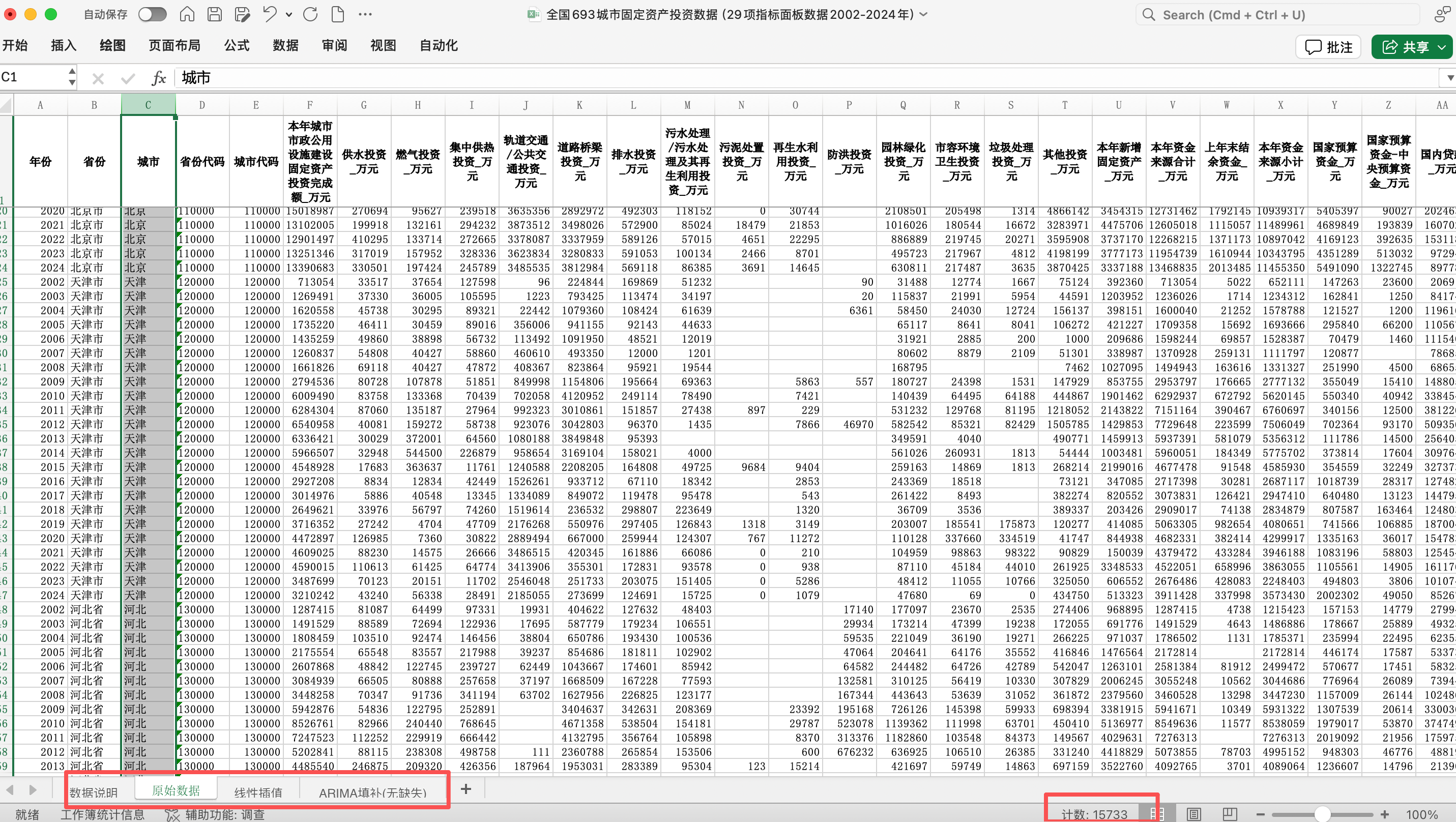 全国693城市市政公用设施投资与资金来源(含投资结构及融资构成29项指标面板2002-2024年)