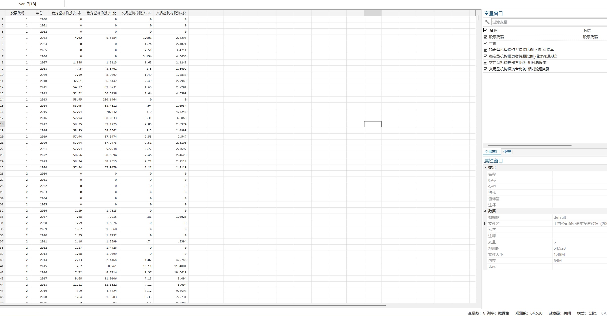 包含稳定型机构投资者持股比例_相对总股本、稳定型机构投资者持股比例_相对流通A股、交易型机构投资者比例_相对总股本、交易型机构投资者比例_相对流通A股四个变量
