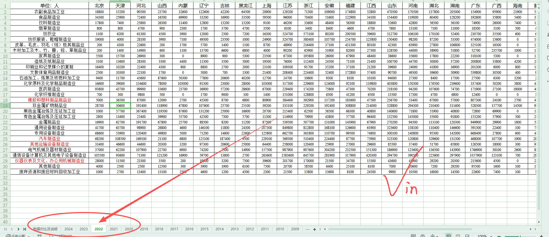 [em49]注意:1.数据说明:1.由于各省统计年鉴公布数据不全/缺失,故而本数据采用中国工业统计年鉴数据,以万人为单位,所以数据都为“00”结尾,数据已统一为“人”。
