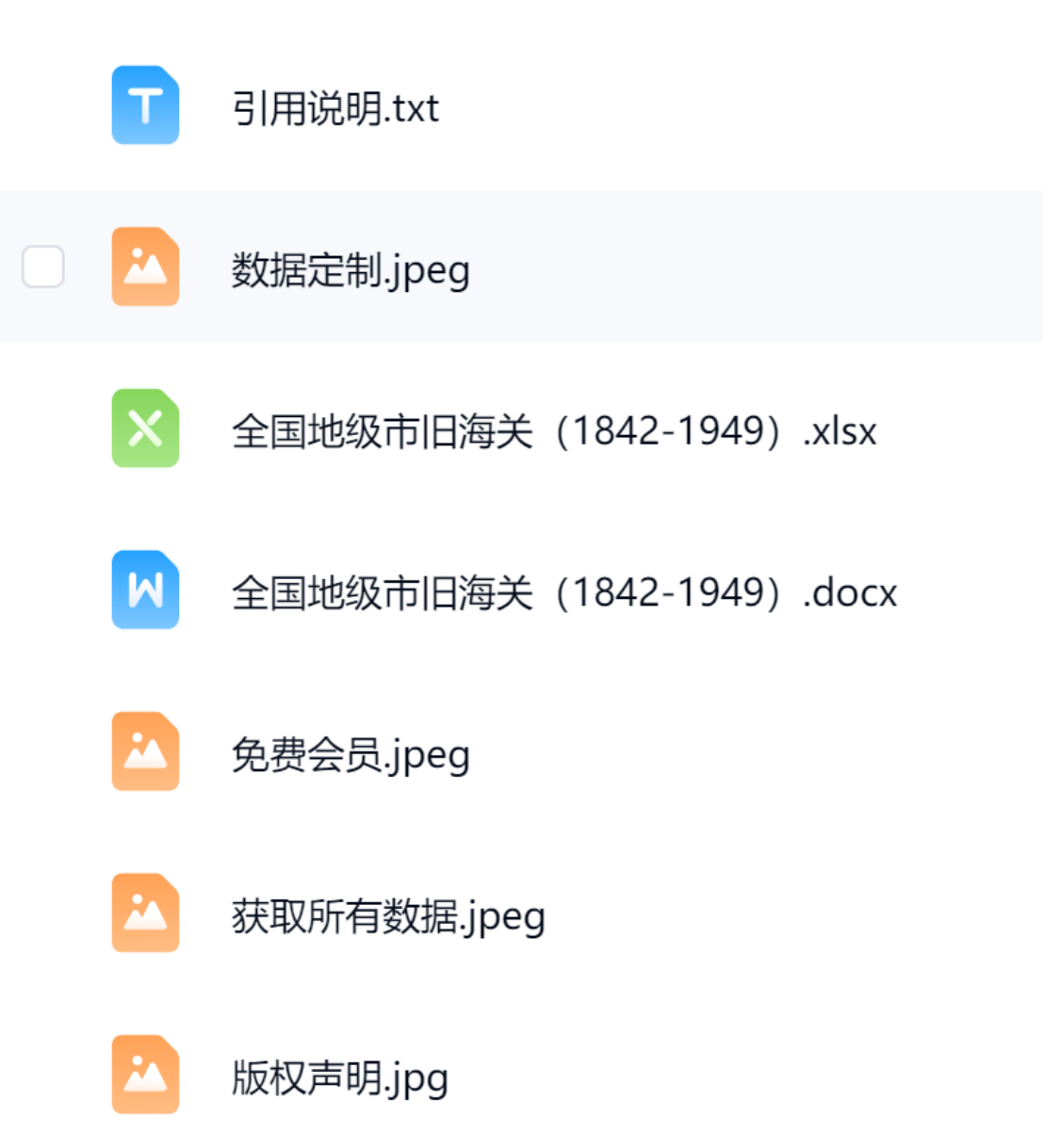 本数据以Jin和Schulze(2025)《The long-term effect of western customs institution on firm innovation in China》的研究框架为参考,构建全国地级市旧海关虚拟变量。旧海关是近代中国对外开放与制度转型的关键节点,其设立位置、贸易规模及存续时间反映了地方早期嵌入全球经济的程度。研究地级市是否曾设有海关,可追溯区域经济开放的历史根源,分析制度遗产如何通过基础设施、商业网络与文化资本形成“路径依赖”,持续影响当代的对外贸易、外商直接投资乃至市场化水平,为理解区域发展差异提供长历史视角的解释。此外,旧海关多分布于沿海、沿江或边境口岸,其空间布局塑造了历史上的贸易通道与城市体系。通过梳理地级市旧海关的分布与功能,可重构近代经济地理格局,并分析其与当代城市群、交通枢纽及产业集聚区之间的空间关联性。这有助于揭示区位优势的历时性变迁,为“通道经济”、区域协同发展等理论提供实证基础。