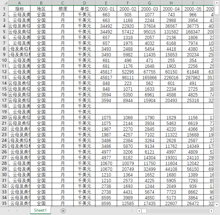 数据来源:中经数据库原始来源为haiguan总署及相关部委、各地统计局公布的数据
