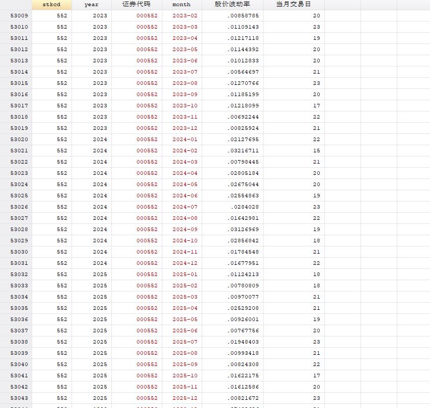 【月度】上市公司股价波动率指标(1991-2025年)包含Stata计算代码
