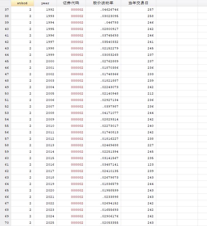 【年度】上市公司股价波动率指标(1991-2025年)包含Stata计算代码