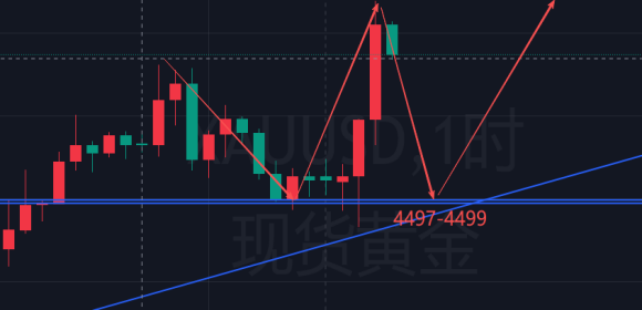 建议黄金回踩下方4497-4499分批多,止损4472,目标目标看4530-4550;(策略建议仅供参考,盈亏自负,做单严格做好风控,设置止损和目标位置,杜绝扛单)