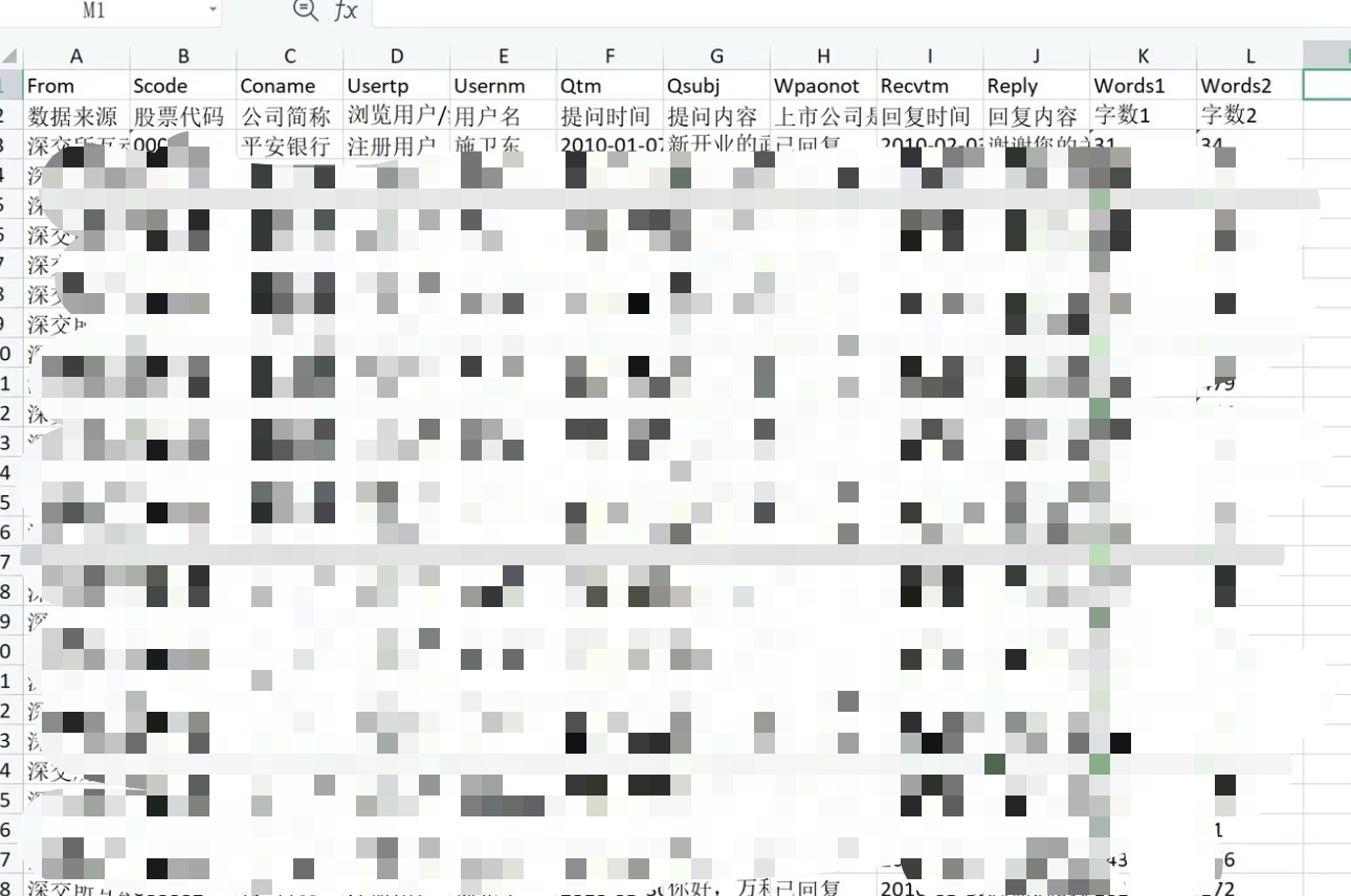 数据来源 公司简称 浏览用户/注册用户 用户名 提问时间 提问内容 上市公司是否回复 回复时间 回复内容 字数1 字数2