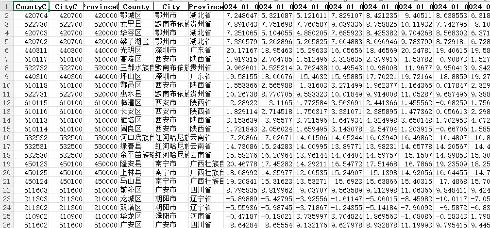 各城市逐日平均气温数据1980-2024