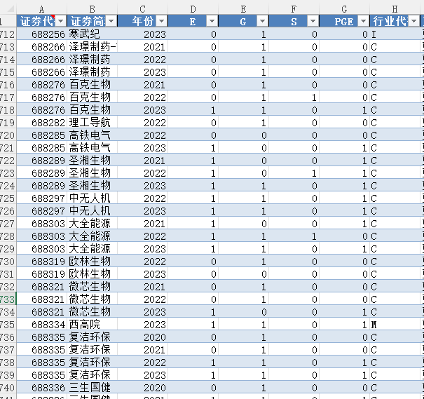 证券代码 证券简称 年份 E G S PGE 行业代码