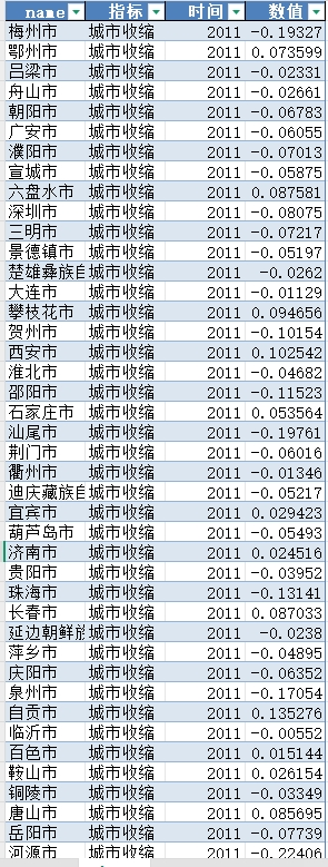 城市收缩指数