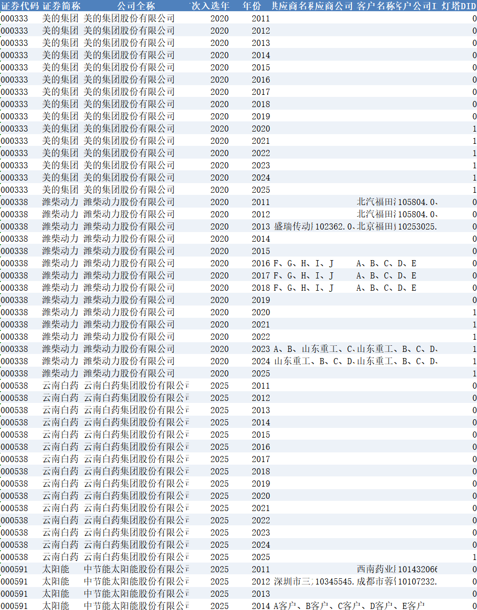 本研究首先整理了中国历年入选灯塔工厂的企业名单,并通过企业名称与上市公司数据进行模糊匹配,筛选出在A股市场有对应主体的“上市灯塔工厂”。在此基础上,进一步匹配其上下游供应链数据,包括供应商和客户企业信息。通过构建一个包含公司基本信息、首次入选年份及其供应链上下游的面板型数据集,将首次入选年份视为政策冲击,最终得到了双重差分(DID)数据。这些数据可以为以下研究提供数据支持:促进企业高质量发展、企业全要素生产率提升,新质生产力培育,并且衡量其对上下游企业的溢出效应。在可持续方面还可以研究其对企业绿色创新、节能减排和ESG表现的影响。
