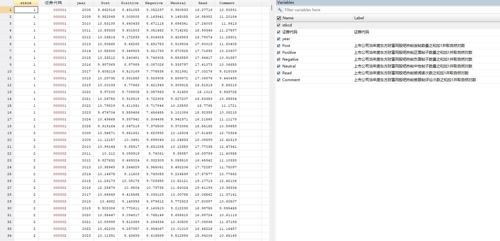 Positive:上市公司当年度东方财富网股吧正面帖子数量之和加1并取自然对数