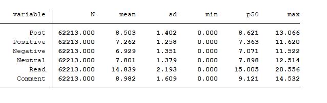 Comment:上市公司当年度东方财富网股吧被跟帖评论次数之和加1并取自然对数