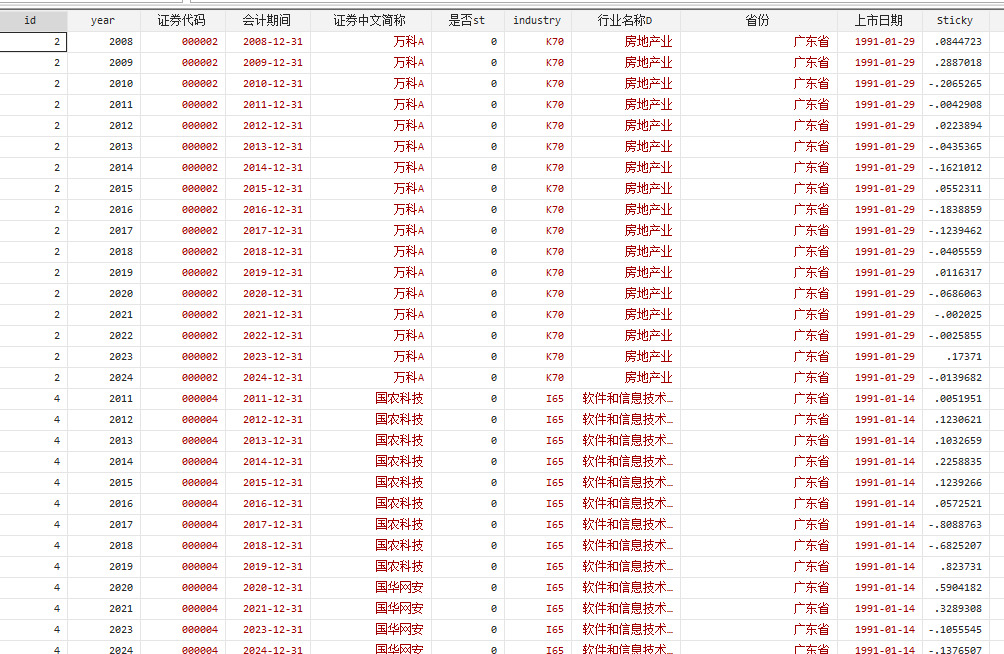 A股上市企业成本粘性指标Sticky数据andson模型ABJ模型2008-2024年