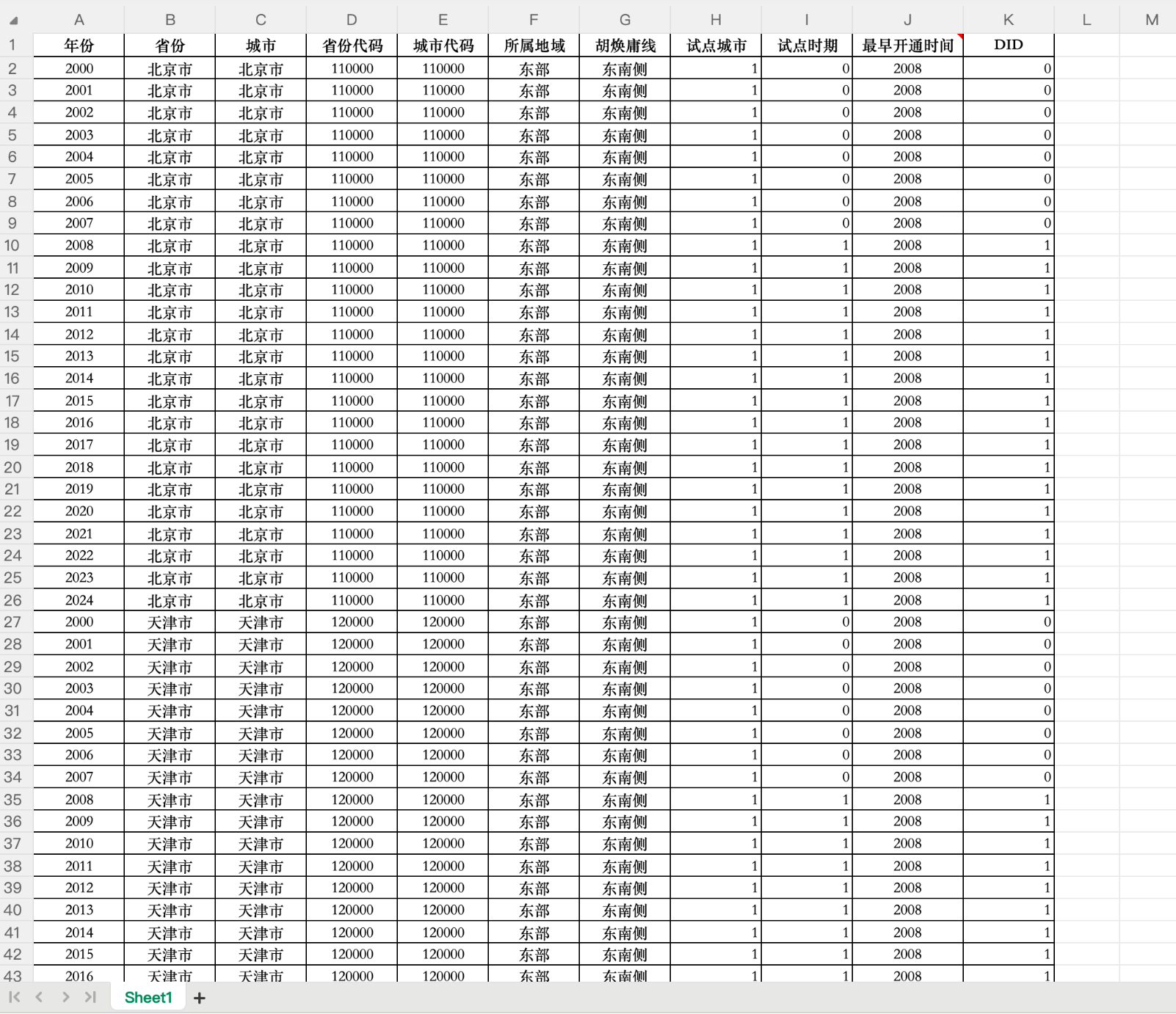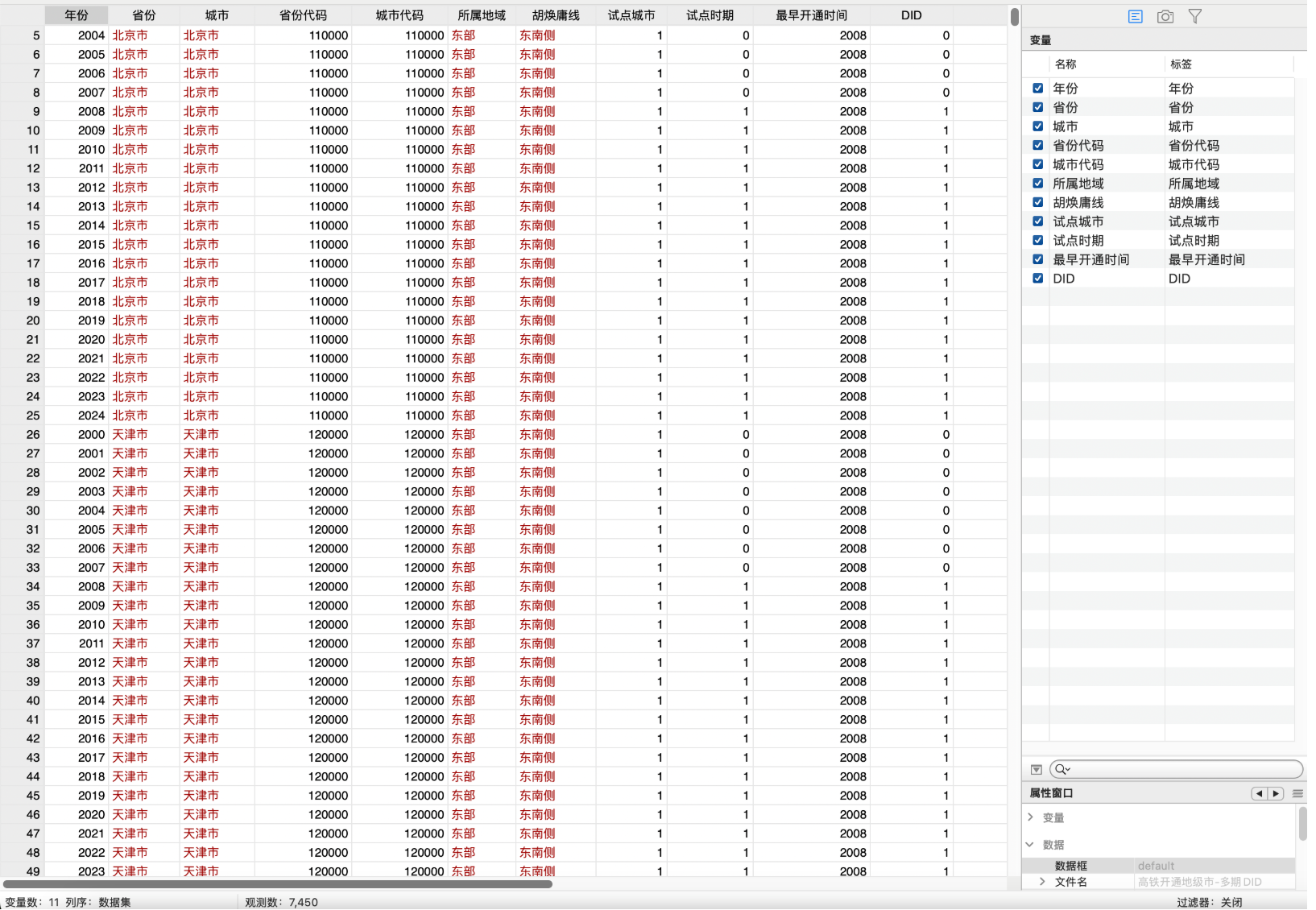 地级市高铁开通数据-多期DID(2000-2024年)一、数据介绍数据名称:地级市高铁开通数据-多期DID