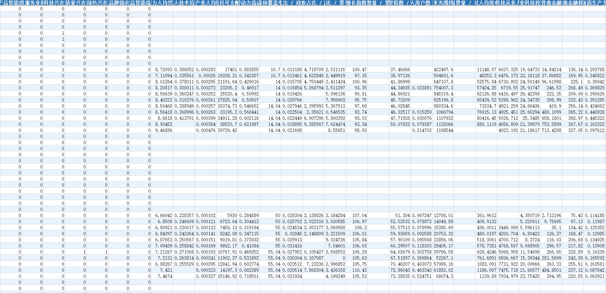 1. 农业新质生产力数据:参考学者朱迪、叶林祥的做法,我们构建了衡量农业新质生产力的指标体系,汇总基础数据计算得,本数据由数据团队整理。