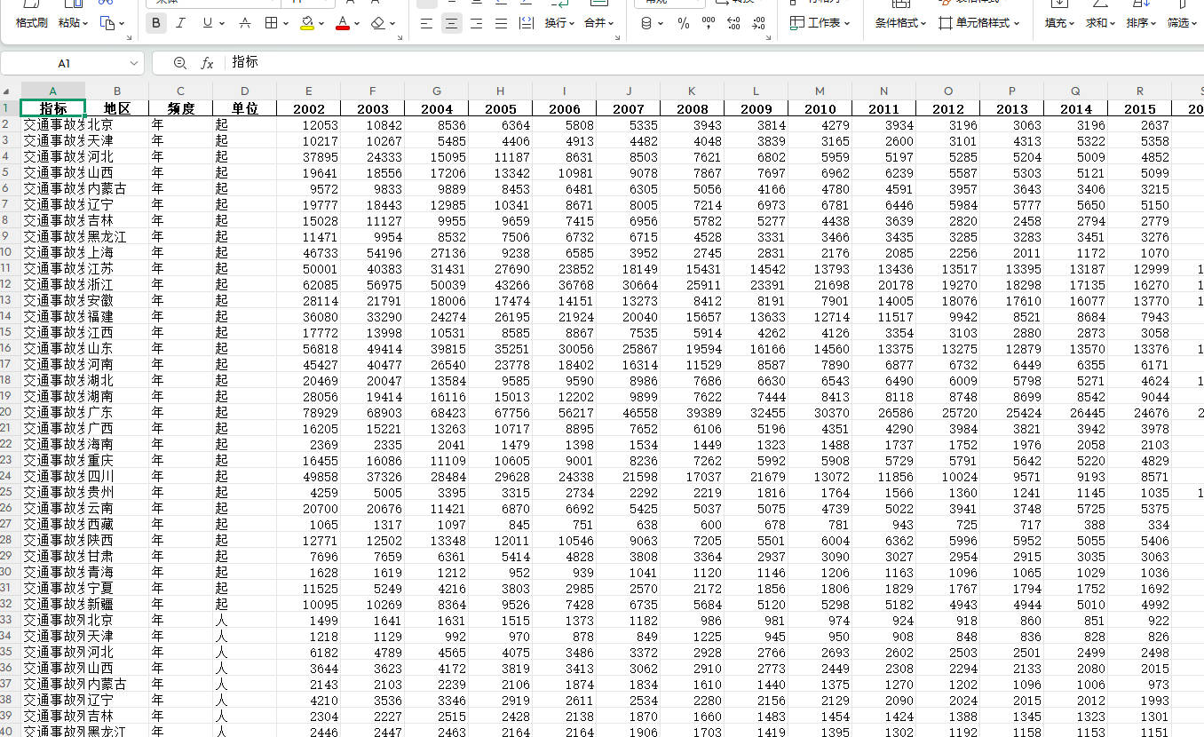 数据名称:中国各省交通事故死亡人数