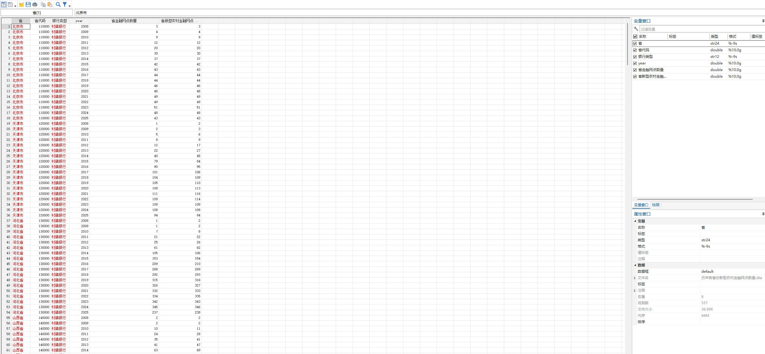 数据文件:历年各省份新型农村金融网点数量.dta