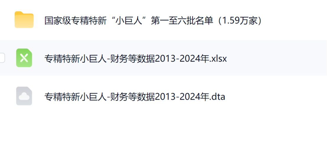 数据名称:2013-2024年专精特新小巨人-财务面板数据