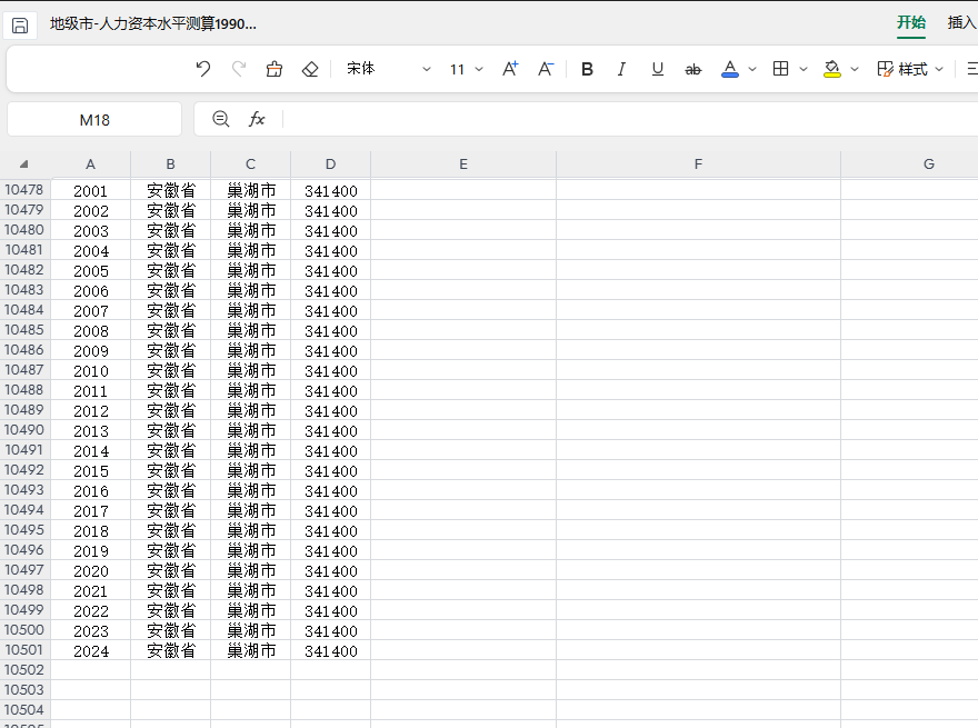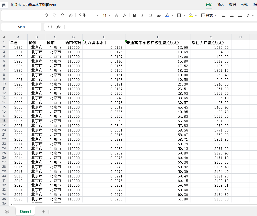 相关指标:年份 省份 城市 省份代码 城市代码 所属地域 胡焕庸线 人力资本水平 普通高等学校在校生数(万人) 常住人口数(万人)