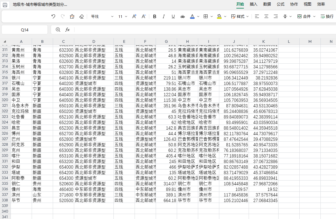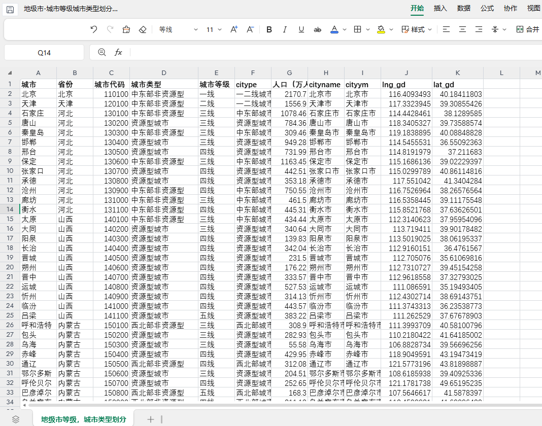 城市 | 省份 | 城市代码 | 城市类型 | 城市等级 | citype | 人口(万人) | cityname | cityym | lng_gd | lat_gd |