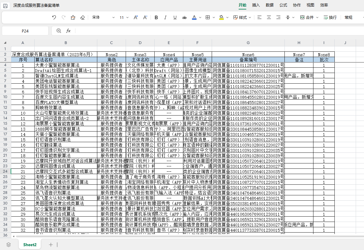 序号 算法名称 角色 主体名称 应用产品 主要用途 备案编号 备注 批次