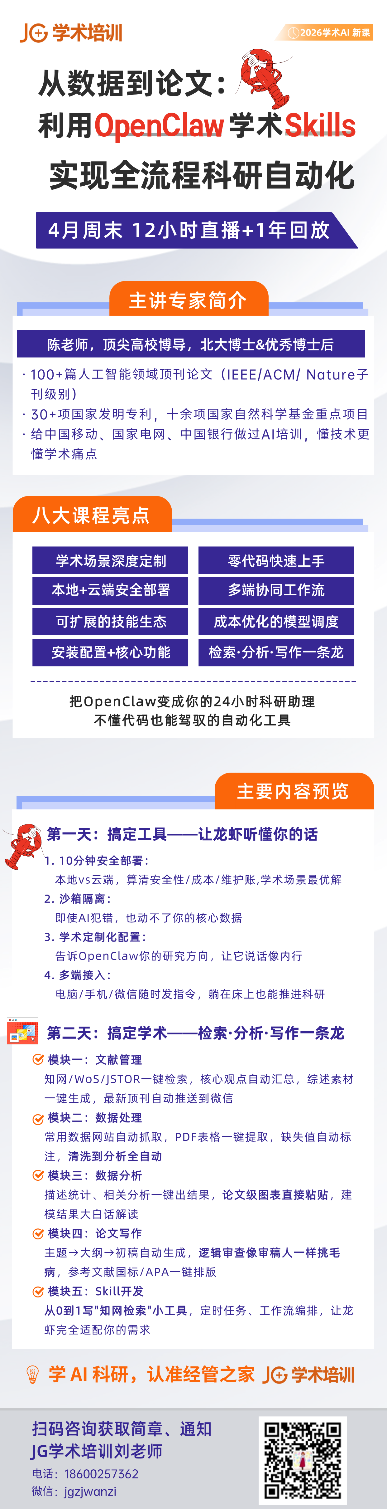 4月11-12日,两天时间,让博导手把手教你养「学术龙虾」,打造24小时专属科研助理,彻底告别科研内耗!