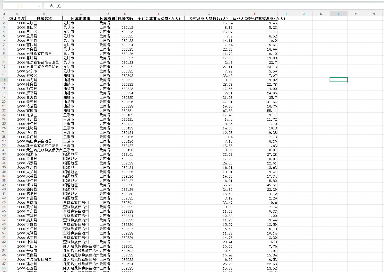 - 县域就业人数乡村从业人员数数据2000-2024年.xlsx