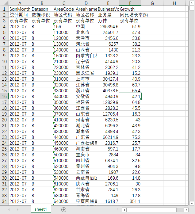 统计期间 数据标识 地区代码 地区名称 业务量 同比增长率(%)