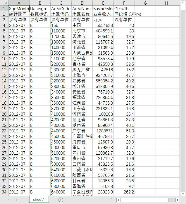 统计期间 数据标识 地区代码 地区名称 业务收入 同比增长率(%)
