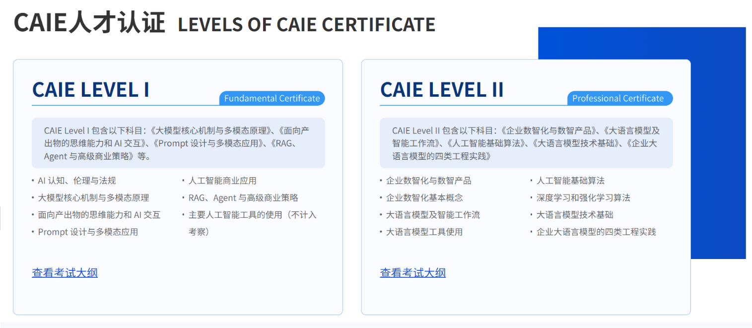 更适合大学生的 AI 证书推荐:从入门到就业一步步来 🌟CAIE注册人工智能工程师认证零门槛入门,不限专业:文科、理科、工科背景都可以从 CAIELevel I 开始学起,特别适合零基础大学生、准备转 AI 方向的同学,以及希望用 AI 增强本专业竞争力的人。