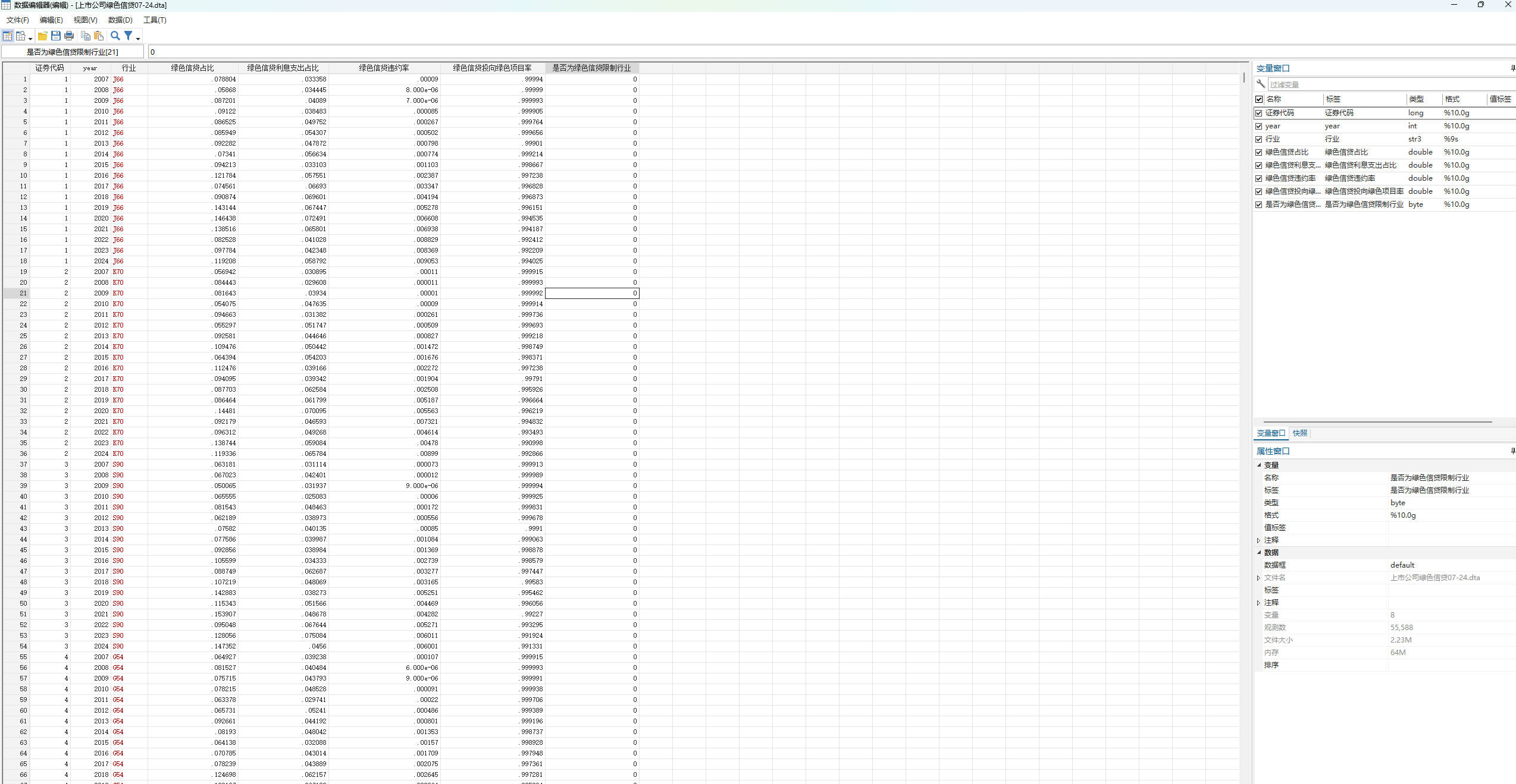 上市公司绿色信贷07-24.dta