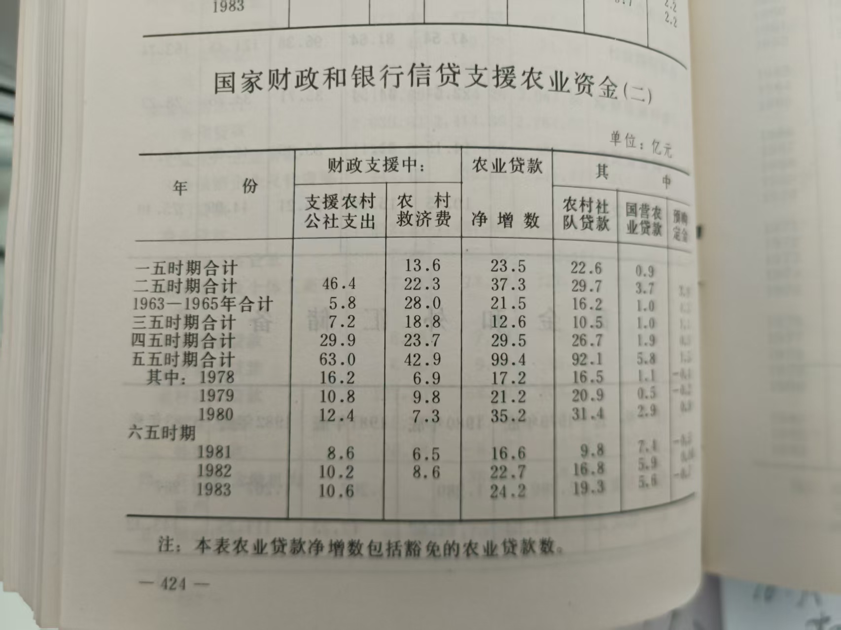 ——1962-1963年:困难时期的滞后影响+政策调整的“缓冲期”。1962年农业生产尚未从“大跃进”和自然灾害的双重打击中恢复,农村劳动力流失、土壤肥力下降、种子质量退化等问题的修复需要时间,粮食产量虽有回升但仍未恢复到1957年前的水平,农业收益不足以覆盖生存成本。国家政策调整的“短期阵痛”:为应对粮食危机,1961年国家开始推行“调整、巩固、充实、提高”八字方针,其中:农业调整的核心是“退社”(高级社向初级社、甚至自留地回归),但政策落地需要过程,短期内农业生产经营模式仍处于动荡状态,效率未能快速提升。同时,1962年国家为稳定城市粮食供应,仍维持一定的粮食征购比例,农村留粮压力较大,导致农业收益缺口持续存在;1963年农业生产开始逐步恢复,但亏损状态尚未完全扭转。到1965年鉴于频繁的自然灾害,农村生活困难和稳定城市粮食供应压力,国家豁免1961年前欠国家的赊销款、预付款、预购定金、农业贷款(含贫农合作基金贷款)等,未归还部分一律豁免;个人欠款中贫下中农全部豁免;共计5.1亿元。变相缓解农民生存压力。来源:《中共中央文件选集》第49册(1965年7-12月),人民出版社2013年版,第12-15页;《建国以来重要文献选编》第20册,中央文献出版社2011年版,第238-241页。豁免债务5.1亿元,属于缩表操作的政策工具,减少债务等于减少应付款项的支出压力,实际上也相应的等于增加收入,却没有在表中体现。若在表中体现,农业收益覆盖生存成本情况会有积极向好变化。
