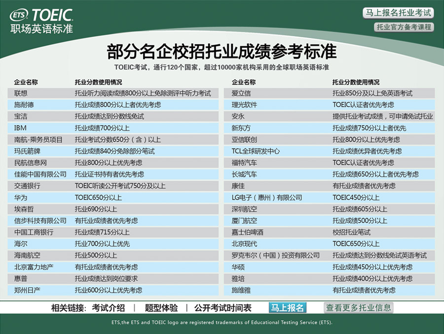 500强企业对托业的要求