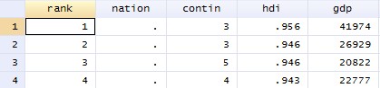 比如变量名是nation,然后下面对应的是Australia,iceland等类似的国家名,然后导入到stata里面,那些个国家名就变成点了,没有任何内容的显示,我不知道应该如何能让它显示内容来