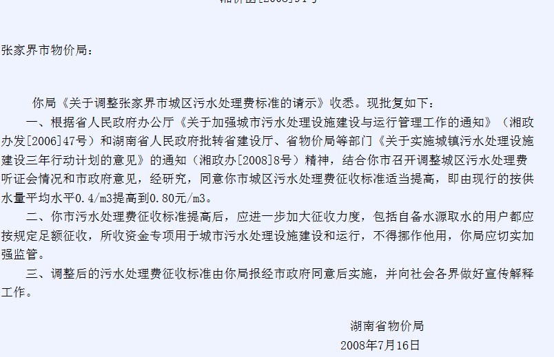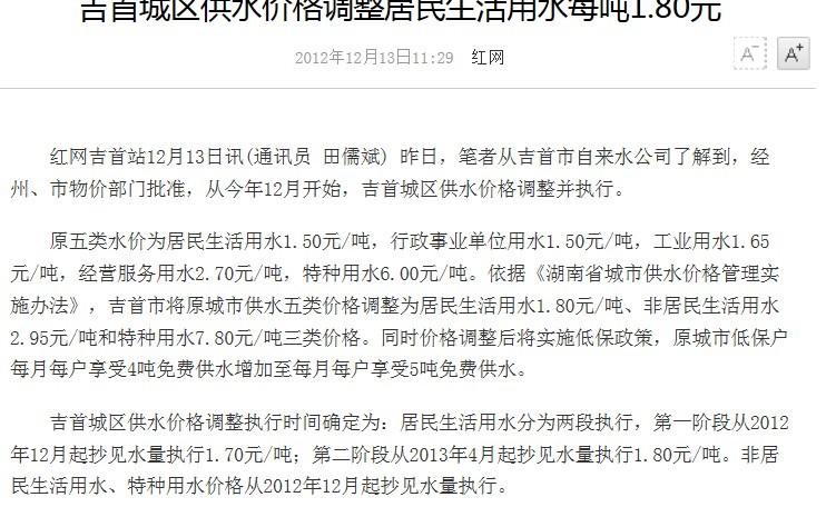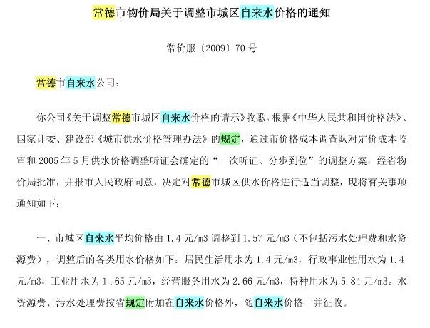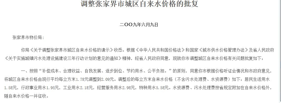 1、居民生活用水由0.35元/立方米调整为0.65元/立方米。