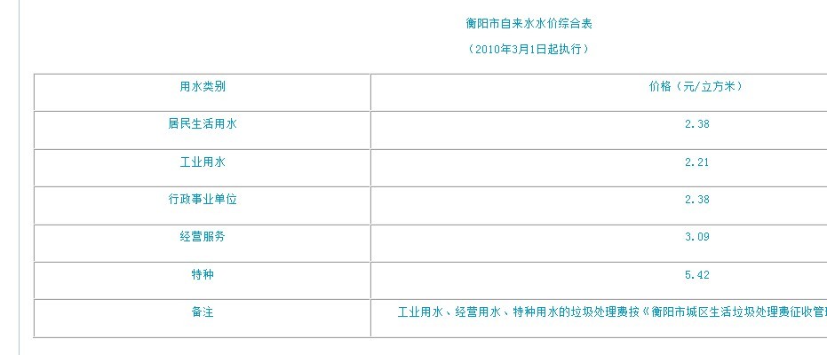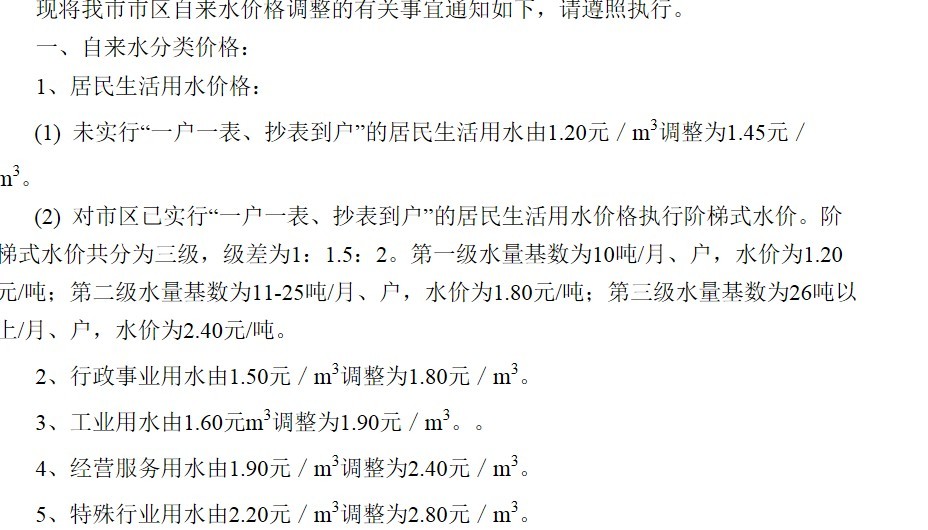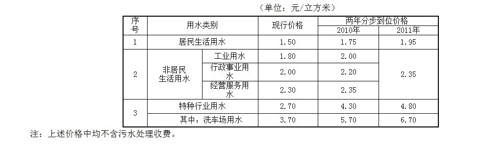 5、特种行业用水由1.10元/立方米调整为1.90元/立方米;其中,洗车场用水2.10元/立方米。