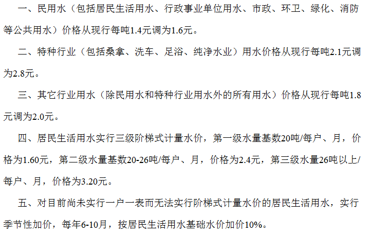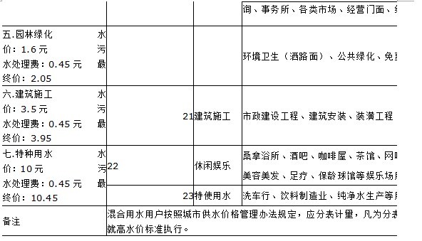 类别 基本水价 水资源费 污水处理费 到户价