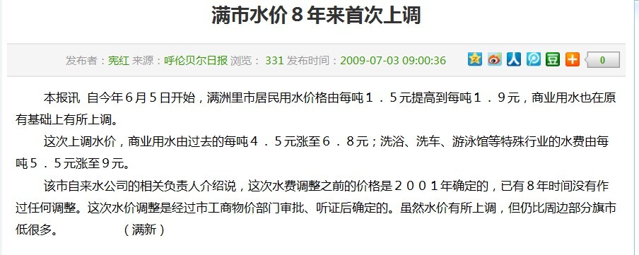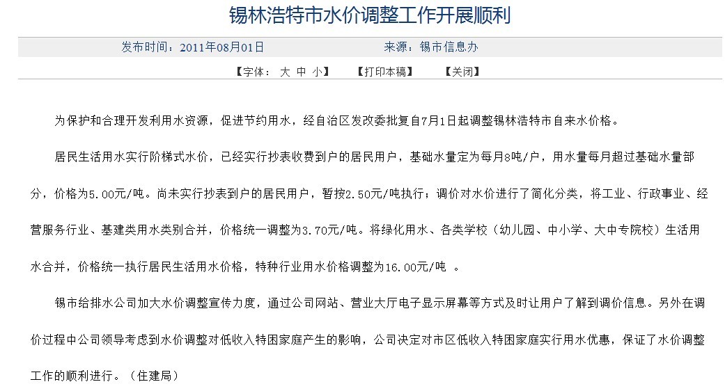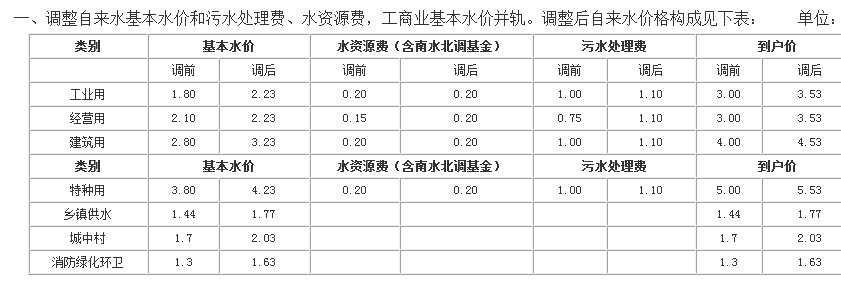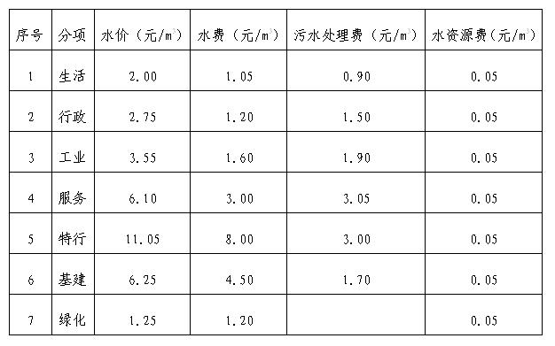 扬州调整后水价构成表 单位:元/m3