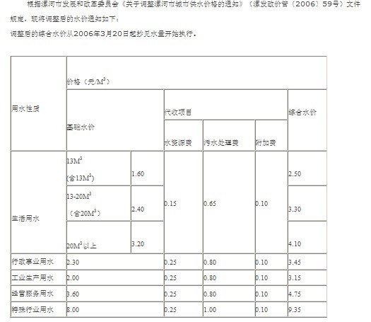 南阳市从2003年开始在中心城区调整过一次污水处理费征收标准,执行标准为居民生活用水每立方米0.6元,特殊行业用水和单位自建供水设施取水每立方米0.8元,其他用水每立方米0.7元。目前,按照省ZF要求并结合地方实际,南阳市将征收标准确定为:城市居民用水每立方米0.65元、特殊行业用水和单位自建供水设施取用地下水每立方米1元、其他用水按每立方米0.8元收取。
