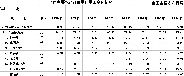 1998-2007年全国主要农产品成本收益汇编,EXCEL格式