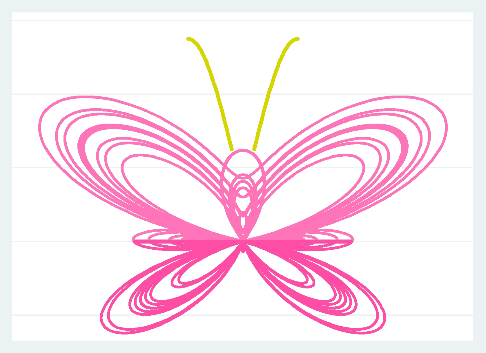 gen x = sin(t)*(exp(a)-2*b-(sin(t/12)*sin(t/12)*sin(t/12)*sin(t/12)*sin(t/12)))