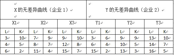 设有两种产品X和Y,其等产量线由下表构成,如果可用资源L=18,K=12。